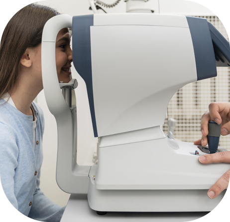 O exame é simples, rápido e não encosta no olho. Você apoia o rosto no equipamento e olha para uma luz fixa por alguns instantes.